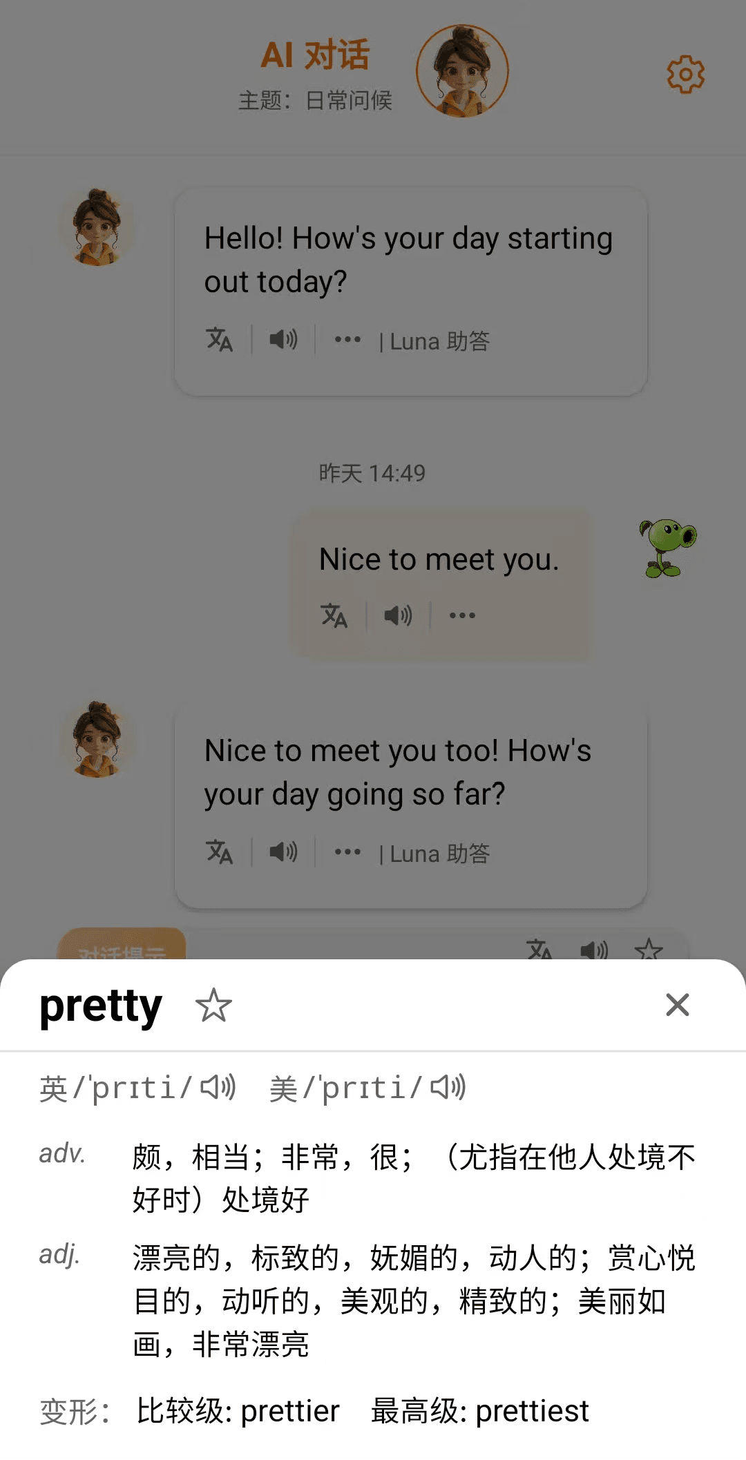- Multiple languages for conversation practice to meet different learners’ needs.